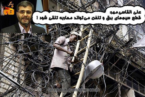 به گزارش روز دوشنبه (۱۸دی) ایسنا٬ آقای القاضیمهر گفته چنانچه سیمهای برق و کابلهای مخابراتی با قصد اخلال در نظم و امنیت عمومی قطع شود این اقدام محاربه محسوب خواهد شد.
