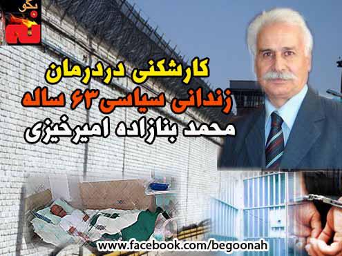 لازم به یاد آوری است که آقای محمد بنازاده امیرخیزی ۶۳ ساله در ۹ آذرماه سال ۸۸ با یورش مامورین وزارت اطلاعات به محل کارش دستگیر میشود و همچنین خواهر این زندانی سیاسی، بنام کبری بنازاده امیرخیزی که حدود ۶۰ سال سن دارد از ناحیه زانو، کمر و چشم ابراز
