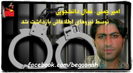 امیر چمنی، فعال دانشجویی، توسط نیروهای اطلاعاتی بازداشت شد