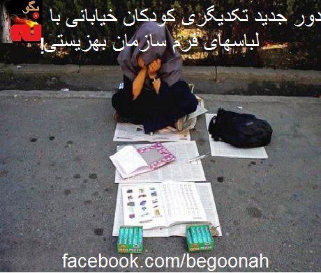 در هفتههای اخیر در چهارراههای شهر تهران، برخی از کودکان خیابانی که به فروش گل، سی دی، آدامس و کالاهای دیگر مشغولند، با لباسهای یکسان و یک شکل به کار مشغولاند.