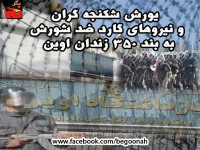 صبح روز پنج شنبه ۲۸ دی ماه تعداد زیادی از شکنجه گران با همراهی نیروهای گارد ضد شورش به بند ۳۵۰ زندان اوین يورش بردند و ضمن بازرسی بند، به تفتيش بدنی و رفتار توهين آميز با زندانيان سياسی پرداختند.