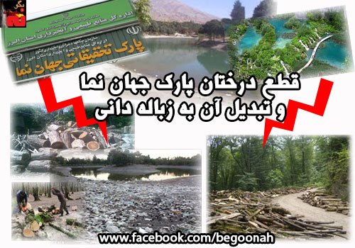 پارک جهاننما که از 50 سال پیش در نزدیکی کرج احداث شده رويشگاه گونههای بینظیر درختان بیش از يكصد کشور دنيا است كه طي سالهاي گذشته به نشانه صلح و دوستی توسط روساي جمهورهای مربوطه و سران کشورها کاشته شده اما حالا فقط براي اينكه وزارت راه متحمل هزينه بيشتري نشود تا مسير اتوبان را قدري تغيير دهد ، در حال تخریب است