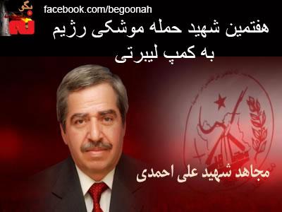 مجاهد خلق علی احمدی که در حمله موشکی به لیبرتی چشم چپ خود را از دست داده بود، بهخاطر ترکشها در مغز مورد عمل جراحی قرار گرفت. علی احمدی که بهشدت مجروح شده و در کما بود در ساعت 14 امروز سهشنبه 24بهمن ماه بر اثر شدت جراحات وارده بهشهادت رسید.