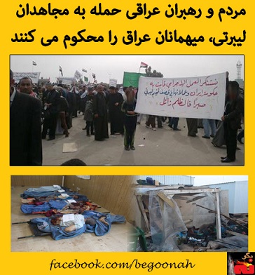 مردم عراق در قيام روز جمعه 15فوريه خود که جمعه «بغداد، پايداری» نام داشت، حمله موشکی به ليبرتی و کشتار مجاهدان اشرفی را محکوم کردند