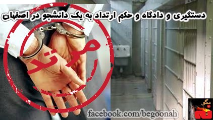 يكي از دانشجويان دانشگاه گيلان كه در رشته مهندسي معماري دوره كارشناسي ارشد را ميگذارند بجرم خودساخته ارتداد به اعدام محكوم ميشود . به گزارش ایران خبر وي كه در تز خود در رشته درسي اش در خصوص مرمت آثار تاريخي درخصوص معماري اديان مطالبي متشکل از شناخت ۷ دين برتر جهان يعني اسلام مسيحيت شنتوي زرتشت بودا سيک يهود نوشته بود و آنرا به استاد كلاس تحويل ميدهد، استاد كه از مزدوران رژيم آخوندي بود پس از مطالعه تز آنرا به حراست دانشگاه تحويل ميدهد . حراست نيز با خواندن تز مربوطه طي شکايت به دادگاه انقلاب اصفهان وبعد ازآن درشعبه۱۰۳به قضاوت قاضي دياني اين دانشجو را به جرم ارتداد محکوم به اعدام ميكند. ازپرس قضايي پرونده شخصي به نام سياف زاده بوده و به استنادقوانین ضدّ بشری رژیم نامبرده را از حيث اعلام به کتب جعلي به تحمل ۱سال حبس تعزيري از حيث استفاده از سند مجعول به تحمل يک سال حبس تعزيري از حيث هتک حرمت وتشويش اذهان عمومي به تحمل يک سال حبس تعزيري وتحمل ۷۴ ضربه شلاق محکوم کرد ودر خصوص حکم ارتداد با توجه به مدارک موجود در پرونده وعدم توبه متهم نامبرده رامرتد ملي فرض شده وبه اعدام با چوبه دار درحضور عادلين محکوم مينمايد راي صادره حضوري ظرف۲۰روز پس از ابلاغ قابل اعتراض ورسيدگي در محاکم تجديد نظر استان ميباشد.