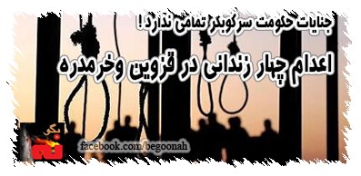 بنابه اخبار سايت هاي حقوق بشري و رسانه هاي خبري چهار زنداني در قزوين و خرمدره اعدام شده اند.