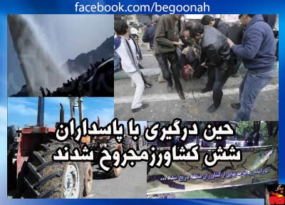 علاوه بر پاسداران، مزدوران لباس شخصی نيز به محل آمده و با کشاورزان معترض درگير شدند. گفته می شود در اين درگيری ۶ تن از کشاورزان مجروح و به بيمارستان منتقل شدند.