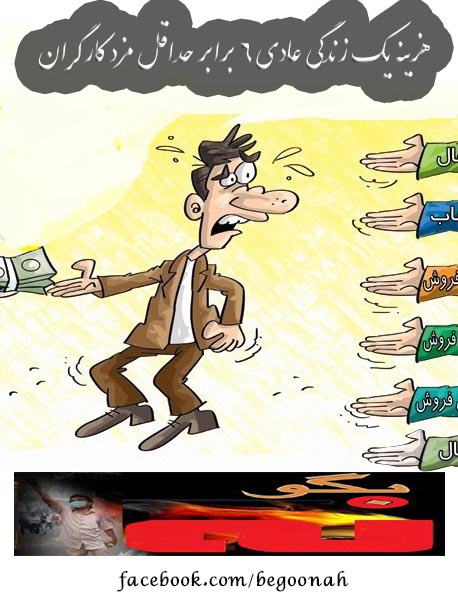 حداقل هزینه یک خانواده ی ۴ نفره در حاکمیت چپاولگر خامنه ای بالغ بر ۲,۵ میلیون تومان ارزیابی شده است. این رقم در حالی است که برای نمونه حداقل درآمد یک کارگر براساس تعرفه های دولتی ۳۹۸ هزارتومان تعیین شده اسیت . براین اساس حداقل هزینههای زندگی شش برابر بیشتراز حداقل درآمد کارگران است. (ایلنا،۵ اسفند)
