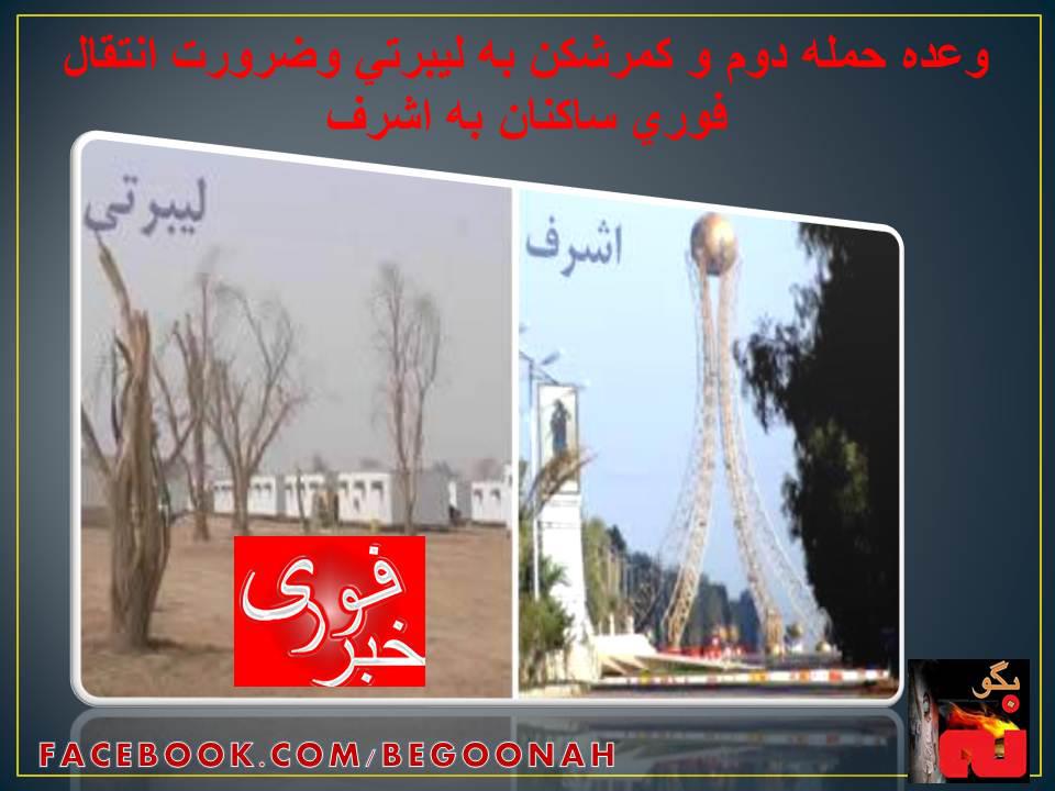 اين اظهارات به خوبي نشان مي دهد هدف جابجايي اجباري ساكنان اشرف به ليبرتي نابودي آنها بوده است و امروز نيز تإمين حفاظت و امنيت آنها بر هر چيز ديگر اولويت دارد و براي جلوگيري از فجايع بعدي تنها راه فوري و در دسترس انتقال آنها به اشرف است وآمريكا و ملل متحد بايد همه تلاشهاي خود را در اين سمت متمركز كنند. تعلل در اين موضوع به هر بهانهيي كه باشد، پذيرفته نيست. چرا كه هر لحظه امكان تكرار فاجعه و وقوع قتل عام چهارم ميرود و در اين صورت هيچ بهانه يي نه از آمريكا و نه از سازمان ملل و هيچ طرف ديگري پذيرفته نيست.