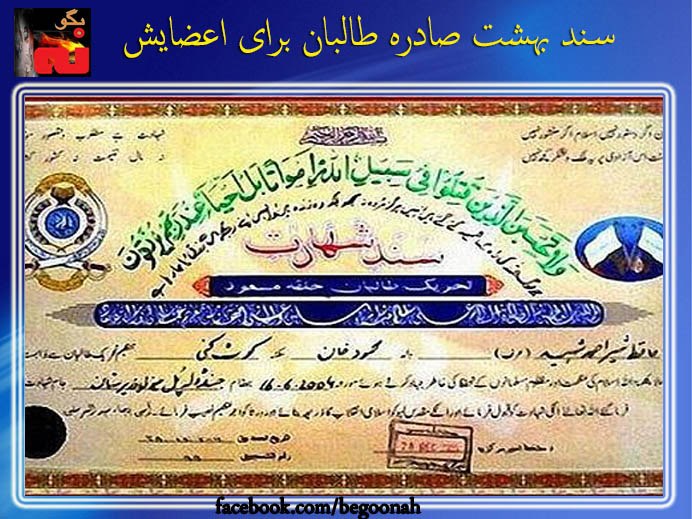 جالب است که فرماندهان طالبان برخی مواقع سند شهادت را پیش از کشته شدن دارنده آن به وی اعطا میکنند.