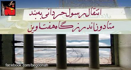 «رسول حردانی «زندانی بند 350 اوین از 18 روز پیش به اندرزگاه 7 سالن کارگری قسمت متادون، منتقل شده است.وی 30 سال دارد و اتهام وی هواپیما ربایی در 17 سالگی است. زمانی که سال 1379 وی با خانواده اش قصد پناهندگی داشتند، سعی کردند هواپیما را به کنترل خود در آورده وبه سوی مقصد مورد نظر خود تغییر دهند ولی با ناکام ماندن هدف، خود و سایر اعضای خانواده دستگیر شدند. حکم تعدادی از آنها اعدام و سپس به حبس های طولانی مدت تبدیل شد. بنا به اعتراف خانواده حردانی این عمل به دلیل فقز مالی و شرایط نامناسب زندگی صورت گرفته بود.