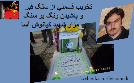 تخریب قسمتی از سنگ قبر و پاشیدن رنگ بر سنگ مزار شهید کیانوش آسا