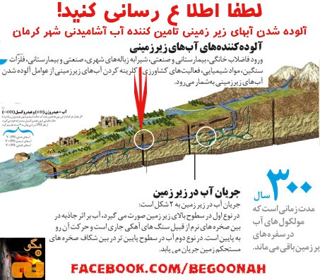 لطفا اطلا ع رساني کنيد بابت آلوده شدن آبهاي زير زميني تامين کننده آب آشاميدني شهر کرمان