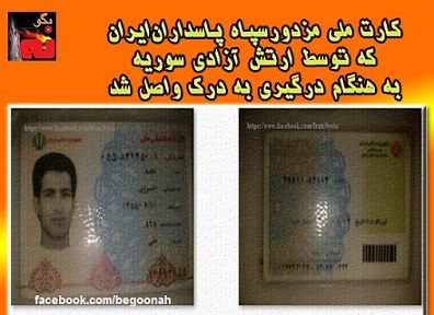 اخبار کارت ملی مزدور سپاه پاسداران ایران که توسط ارتش آزادی هنگام درگیری با ارتش اسد به درک واصل شد Date: مارس 14, 2013Author: begoonah 0 دیدگاه اشتراکگذاری این:بیشتر برای اشتراکگذاشتن فیسبوک خود کلیک کنید (در پنجرۀ تازه باز میشود) فیسبوک اشتراک گذاشتن توسط اس ام اس (در پنجرۀ تازه باز میشود) X برای چاپ کردن کلیک کنید (در پنجرۀ تازه باز میشود) چاپ برای اشتراکگذاری روی Telegram کلیک کنید (در پنجرۀ تازه باز میشود) تلگرام برای اشتراکگذاری روی WhatsApp کلیک کنید (در پنجرۀ تازه باز میشود) واتساپ