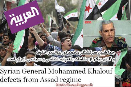 بگزارش تلويزيون العربيه سرلشکر محمد نور عزالدین خلوف، رئیس هیئت تدارکات عمومی ارتش سوریه و فرزند وی سرتیپ عزالدين خلوف فرمانده تیپ شناسایی لشکر ۹۱ از ارتش سوریه جدا شده به مخالفان سوری پیوستند.