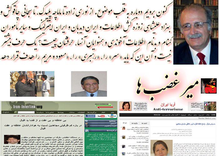 ايرج شكري. يك اخراجي شورا كه اكنون از فرط ضديت و هيستري ضد مجاهدي آنقدر ياوه سر هم ميكند و مينويسد كه خريدار عمده و اصلياش كه در عين حال نخستين مولد و مبدع آن هم هست ( رژيم آخوندها) كم و كسري احساس نكند. ايرج شكري در حالي كه متصل دروغ ميگويد، اما مرتب تكرار ميكند كه «برادر شريف ميداند من دروغ نميگويم، دروغگو سگ است»، در يك مطلب 15 صفحهيي با دستاويز قراردادن مقاله يي كه به گفته او «در مورد حمله هايي بود که به خانم عاطفه اقبال به خاطر فراخواني که براي حمايت از انتقال هرچه سريعتر مجاهدين مستقر در ليبرتي به خارج از عراق در فيس بوک منتشر کرده، شده بود»، چنين مينويسد:« با توجه به شناختي که از «سيره سيئه» و انزجار برانگيز نسق گيري و قلدرمنشي و برچسب زني… از سوي رهبري مجاهدين بکار گرفته شده،گفتم نکند محمد اقبال بنا بر همان سيره سيئه –وارد اين دسته کُر ارعاب.. بشود و مبادا قلم را در حرمت شکني عليه خواهرانش بکار بگيرد. تصور اين مساله خيلي برايم آزار دهنده بود. چون زماني که او در فرانسه بود و در مدتي که گاهي او را در اورسورواز- دبيرخانه شورا- مي ديدم، هميشه او را خوش برخورد و لبخند برلب و با نزاکت يافته بودم گفتم آقاي محمد اقبال پخته تر و فهيم تر از آن است که به اين نوع خود نمائيهاي مبتذل و انزجار برانگيز دست بزند و حرمت خواهر نگه ندارد. اما تصادفا مطلب به شدت توهين آميز محمد اقبال عليه عاطفه را در سياست ايران افشاگر وابسته به سازمان مجاهدين خلق را ديدم و بسيار متاسف شدم که او به چنين اقدام انزجار برانگيزي دست زده است… محمد اقبال به عنوان يکي از «سربازان مريم و مسعود» و يک «خالص شده در کوره انقلاب ايدئولوژيک» براساس تعليمات و فضايي که توليد کنندگان و آفريندگان اصلي آن را مسعود رجوي و مهدي ابريشمچي مي دانم به ويژه بر اساس رهنمودها و خط نشان کشيدن هاي مسعود رجوي در سخنان ديماه.. عمل كرده است». اول آنكه اين ميرغضب آن روي مرا نديده بوده، به جلاد و ميرغضب كه لبخند نميزنند، آن موقع عضو شوراي ملي مقاومت بودي كه فلسفه وجودي و رسالتش سرنگوني رژيم آخوندي است. اين كجا و يك ياوه سراي همسو و همنوا با سايتها و مزدوران گشتاپوي آخوندي بر ضد اين مقاومت كجا؟ دوم آنكه اينهم آخرش صريحا گفته كه مقاله را من ننوشتهام بلكه «بر اساس تعليمات.. مسعود رجوي و …» بوده است. اين هم ميرغضب است و كارش سر زدن.
