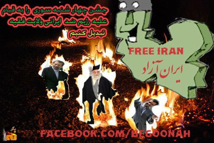 امروز در تهران و ساير شهرهای ميهن، مردم به ويژه جوانان با آتش زدن عکسهای خامنه ای و سردادن شعارهای ضدحکومتی، جشن سنتی چهارشنبه سوری را به خيزشی عليه ديکتاتوری آخوندی تبديل کردند.