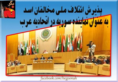 وزرای خارجه کشورهای عربی روز یکشنبه ۲۴ مارس ضمن جلسه ای مقدماتی در اتحادیه عرب، اعطای کرسی سوریه به مخالفان اسد را مورد بحث و بررسی قرار دادند. به گزارش العربیه به نقل از منابع آگاه در نشست اعضای اتحادیه عرب، ائتلاف ملی مخالفان سوری به عنوان نماینده مشروع مردم این کشور پذیرفته شده است.