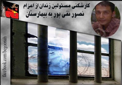 روزنامه نگار و فعال حقوق بشر، آقای نصور نقیپور که از بیستم تیرماه سال جاری در بند ۳۵۰ زندان اوین محبوس است، به دلیل کمبود ویتامین دچار بیماری لثه و دندان شده به طوری که قادر به خوردن غذا نیست و به دلیل عدم قبول پوشیدن لباس زندان در هنگام اعزام به بیمارستان با مخالفت مسئولین مواجه شده است.