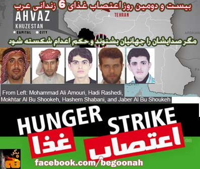 شش شهروند اهل “خلفیه” اهواز که اکنون در زندان کارون اهواز به سر می برند در حد فاصل بهمن تا اسفند سال ۱۳۹۰ توسط ماموران اداره اطلاعات اهواز دستگیر شدند. در شعبه ۲ دادگاه اهواز به ریاست قاضی موسوی که در اواخر خرداد ماه ۱۳۹۱ برگزارشد پنج تن از آنها به اتهامات محاربه، مفسد فی الارض، اقدام علیه امنیت ملی و تبلیغ علیه نظام به اعدام محکوم و متهم ششم به نام رحمان عساکره به ۲۰ سال حبس محکوم شد. شعبه ۳۲ دیوان عالی کشور در تاریخ ۲۰ دی ماه سال گذشته حکم اعدام ها را تایید کرد و اکنون هر لحظه امکان اجرای حکم وجود دارد.به گزارش کمیته گزارشگران حقوق بشر,دلیل اعتصاب غذای این ۶ نفردر اعتراض به حکم اعدام و در اعتراض به وضعیت زندان کارون اهواز که وضعیت تغذیه و بهداشتی افتضاحی دارد و همین طور به دلیل اینکه دسترسی به پزشک ندارند, میباشد.در بازداشتگاه اطلاعات آنها شکنجه های وحشیانه ای شده اند که لگن خاصره هادی راشدی شکسته، جابر طی شکنجه فک و دندانش شکسته، مختار از بیماری روحی و روانی رنج می برد، فراموشی و لرزش دست دارد و بقیه شان هم حالشان خوب نیست و از آن زمان تا کنون که دو سال می گذرد دسترسی به پزشک نداشته اند. هادی راشدی هم که حالش بدتر از بقیه است، علاوه بر دردهای دوران شکنجه، از رماتیسم قلبی و ناراحتی کبدی رنج می برد و احتیاج به دکتر دارد. او قبل از زندان مرتب تحت معالجه دکتر متخصص بود اما الان دو سال است که دسترسی به دکتر ندارد.»