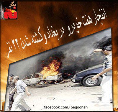 اخبار انفجار هفت خودرو در بغداد و كشته شدن 22 نفر Date: مارس 29, 2013Author: begoonah 0 دیدگاه خبرگزاري فرانسه از انفجار هفت خودرو در بغداد و كشته شدن 22 نفر خبر داد. شبكه العربيه در يك خبر فوري امروز اعلام كرد كه بغداد امروز شاهد وقوع انفجار هفت دستگاه خودرو بمب گذاري شده بوده كه بر اثر آن دست كم 222 عراقي كشته شده اند. اشتراکگذاری این:بیشتر به اشتراک گذاشتن در فیسبوک (در پنجرۀ تازه باز میشود) فیسبوک Share on X (در پنجرۀ تازه باز میشود) X چاپ (در پنجرۀ تازه باز میشود) چاپ Share on Telegram (در پنجرۀ تازه باز میشود) تلگرام Share on WhatsApp (در پنجرۀ تازه باز میشود) واتساپ