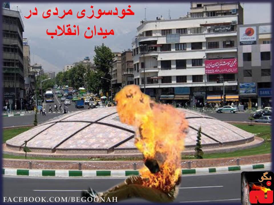صبح امروز شنبه مردی در ضلع شمال غربی ميدان انقلاب در تهران دست به خودسوزی زد. اين فرد با ريختن بنزين بر روی خود، اقدام به خودسوزی کرد. به گفته شاهدان وی که به شدت مجروح شده بود، با آمبولانس به بيمارستان منتقل شد. این چندمین مورد خودسوزی در ایران طی ماههای اخیر در اعتراض به سیاست های ضد مردمیحکومت آخوندی است.