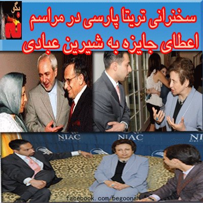 این اولین بار نیست که شیرین عبادی جایزه حقوق بشری میگیرد و آخرین باری هم نیست که در کنار وابستگان رژیم ایران سخنرانی میکند و به آنان اعتبار می بخشد. سال گذشته، وی در میهمانی نایاک و تریتا پارسی شرکت کرد تا کتاب تازه منتشر شده خود را تبلیغ کرده و به فروش برساند.