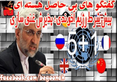 جلیلی دبیر شورای عالی امنیت رژیم آخوندی اعلام کرد که راه گفتوگوها با پذیرش حق غنیسازی ایران باز میشود.به گزارش خبرگزاریهای حکومتی جلیلی ضمن سخنرانی خود در روز پنجشنبه ۱۵ فروردین دردانشگاه فارابی قزاقستان گفت: آنچه که امروز ملت ما (بخوانید رژیم آخوندی و عمله و اکره آن) انتظار دارد تصحیح رفتارهای آمریکاست نه گفتارش و مذاکرات فردا آزمونی برای مشخص شدن رفتار آنهاست.