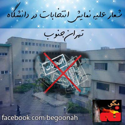 شعار عليه نمايش انتخابات در دانشگاه تهران جنوب