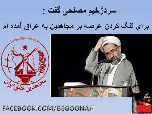 روز شنبه هفدهم فروردین، «حیدر مصلحی» وزیر اطلاعات ولی فقیه که در شهر «کربلا»ی عراق به سر میبُرد، گفت که یکی از اهداف سفرش به این کشور، تنگ کردن عرصه بر اعضای سازمان مجاهدین خلق ایران بوده است.