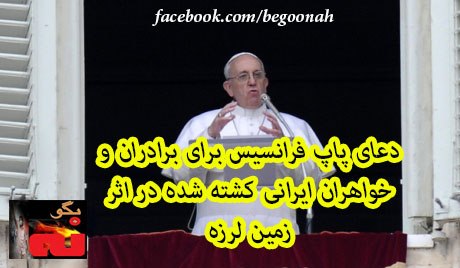 به گزارش آژانس ایتار تاس، پاپ فرانسیس به مناسبت زمین لرزه در جنوب ایران منجر به مرگ افراد و تخریب ها یک مراسم مذهبی را برگزار کرد. خود پاپ از این موضوع در میدان سنت پیتر خبر داد.