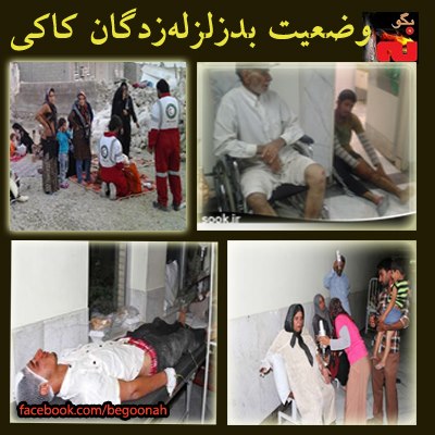 تعداد زیادی از زلزله زدگان در وضعیت بسیار بدی بسر می برند.این درحالی است که در خبرهای ارسالی از شبکه های صدا و سيماي آن ها اعلام می کنند که رسیدگی کامل انجام شده. این موضوع داغ مردم را تازه كرده است.بنا به گفته برخي از اهالي اين شهر، تعدادي از مامورين رژيم، بعد از زلزله منطقه کاکی به بهانه حفظ امنیت وارد خانه های مردم شده و دارایی های مردم را به سرقت برده اند.