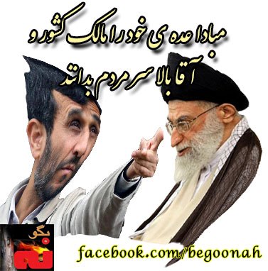 محمود احمدی نژاد رئیس جمهور رژيم پنج شنبه ۲۲ فروردین در سمنان، در ورزشگاه تختی این شهر در يك شاخ و شانه كشيدن براي ولي فقيه طلسم شكسته ارتجاع گفت : «مبادا عده ای این طرف و آن طرف پیدا شوند و خود را مالک کشور و آقا بالا سر مردم بدانند و بخواهند به جای آن ها تصمیم بگیرند.»