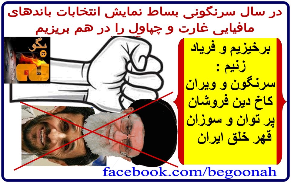 گالری فیلم و تصویر درسال سرنگونی بساط نمایش انتخابات باندهای مافیایی غارت وچپاول را درهم بریزیم Date: آوریل 14, 2013Author: begoonah 0 دیدگاه اشتراکگذاری این:بیشتر به اشتراک گذاشتن در فیسبوک (در پنجرۀ تازه باز میشود) فیسبوک اشتراکگذاری در X (در پنجرۀ تازه باز میشود) X چاپ (در پنجرۀ تازه باز میشود) چاپ اشتراکگذاری در تلگرام (در پنجرۀ تازه باز میشود) تلگرام اشتراکگذاری در واتساپ (در پنجرۀ تازه باز میشود) واتساپ