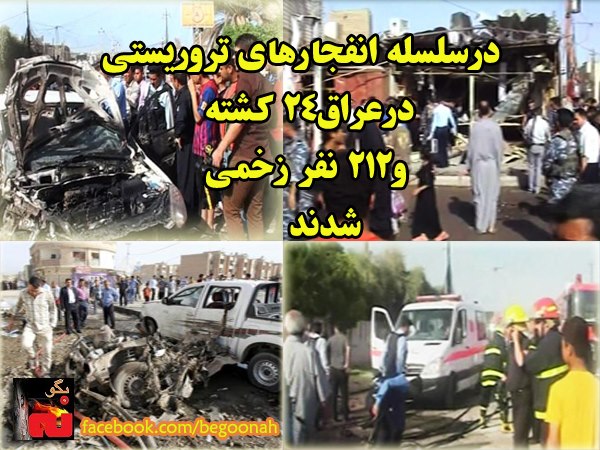 صبح امروز حدود ٢٠ انفجار که اغلب آنها انفجار خودروهای بمبگذاری شده بود، در شهرهای مختلف عراق اتفاق افتاد.