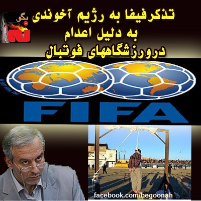 علی کفاشیان،رییس فدارسیون رژیم درفوتبال ایران ، می گوید،فدراسيون جهانی فوتبال درباره برپايی مراسم اعدام در ورزشگاههای فوتبال، به ايران تذکر داده و خواستار جلوگيری از تکرار اين اتفاق شده است.