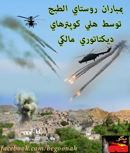 اخبار بمباران روستاي الطبج توسط هلي كوپترهاي ديكتاتوري مالكي Date: آوریل 26, 2013Author: begoonah 0 دیدگاه تلويزيون بغداد گزارش داد ساعاتي قبل، روستاي الطبج در جلولا دراستان ديالي توسط هليكوپترها بمباران شده و بعضي از منازل آتش گرفته است اشتراکگذاری این:بیشتر برای اشتراکگذاشتن فیسبوک خود کلیک کنید (در پنجرۀ تازه باز میشود) فیسبوک اشتراک گذاشتن توسط اس ام اس (در پنجرۀ تازه باز میشود) X برای چاپ کردن کلیک کنید (در پنجرۀ تازه باز میشود) چاپ برای اشتراکگذاری روی Telegram کلیک کنید (در پنجرۀ تازه باز میشود) تلگرام برای اشتراکگذاری روی WhatsApp کلیک کنید (در پنجرۀ تازه باز میشود) واتساپ