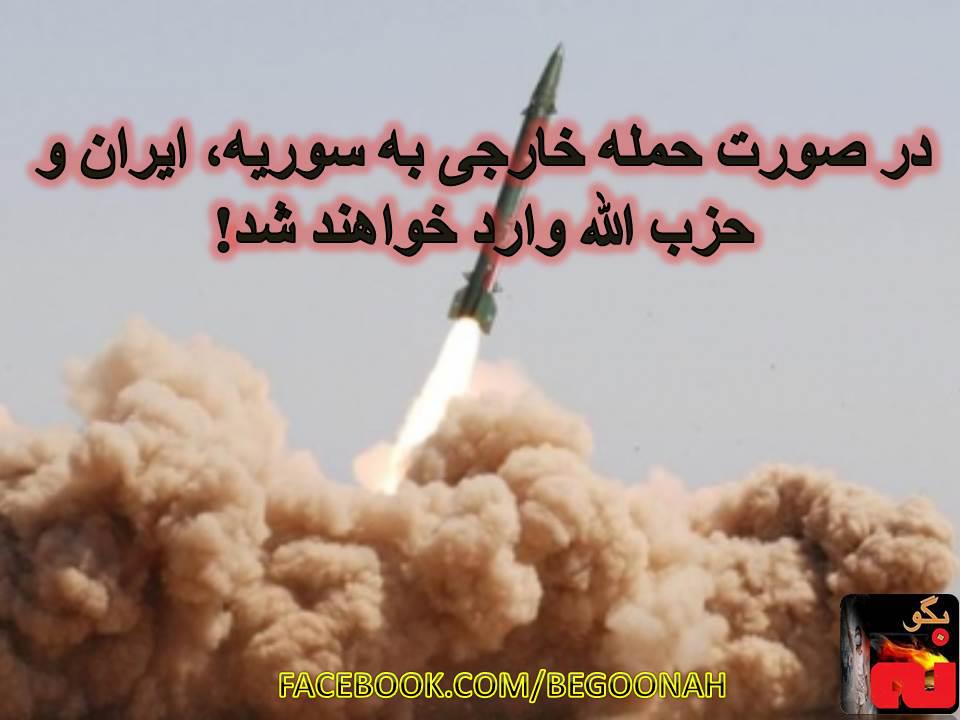 در همین رابطه تلویزیون عربی رژیم العالم در خبری از قول کارشناسان که نامشان را نیاورده اعلام کرده است در صورت مداخله خارجی در سوریه «مقاومت لبنان۲۵۰موشک کوتاه برد و ومیانبرد به اهداف از پیش تعیین شده شلیک خواهد نمود که توانمندی نظامی اسراییل را فلج خواهد نمود، ایران نیز مراکز فرماندهی نیروهای آمریکایی در خلیج فارس را با سلاح های پیشرفته که آن را در رزمایش های سال گذشته خود آزمایش نمود، هدف قرار خواهد داد. ….کما اینکه ایران و سوریه پیمان دفاعی مشترک دارند و در طول هفته گذشته بارها اعلام شد که در صورت هر گونه جنگ احتمالی خارجی علیه سوریه، ایران بدون شک این پیمان نظامی را از قوه به فعل در خواهد آورد.