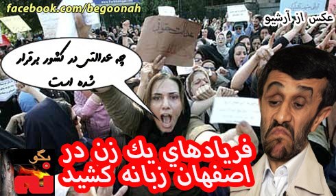 در خلال سخن پراني احمدي نژاد رئیس جمهور ارتجاع در ميدان نقش جهان، مردم حاضر در ميدان ، پلاکارد زرد رنگي در دست گرفته بودند كه روي آن نوشته شده بود: «مسئولان آب منطقهاي، فرمانداري و استانداري اصفهان به دروغ گفتند مشکل آب کشاورزان شرق اصفهان را حل کردهايم.» يکي از زنان حاضر در برنامه که خود را به نزديکيهاي داربستهاي مابين جايگاه ويژه و مردم عادي رسانده بود، هنگام بلند شدن زوزه های دروغین احمدي نژاد در مورد عدالت و برقراري آن در کشور، فريادهايي عليه احمدي نژاد سر داد و به کرات به «عدالت» وی و ولی فقیه اعتراض کرد.