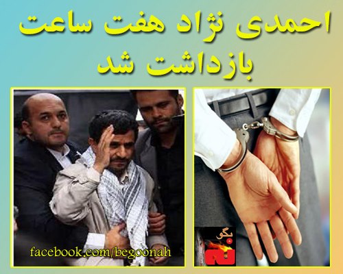 محمود احمدی نژاد در روز دوشنبه ۹ اردبهشت پس از بازدید از نمایشگاه بین المللی کتاب،به مدت هفت ساعت دستگیر و پس از باجوئی و دریافت اخطار مبنی بر سکوت ازاد میشود.