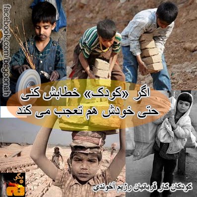 هزاران کودک کار در گوشه و کنار این کشور در کارگاه هاى کوچک و بزرگ در حال انجام کارهای طاقت فرسا میباشند,کودکانی که بازى هاى کودکانه، مدرسه ،بازی در پارکها حتی جز رویاهایشان نیست آنها فقط کار کردن را مى شناسند و خستگى هایى را که با خود شبها به بستر مى برند.