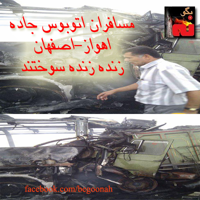 تصادف مرگبار اتوبوس مسافربری با یک کامیون در جاده اهواز ـ اصفهان، موجب آتش گرفتن اتوبوس و مرگ 14 نفر شد.