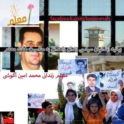 همچنین در این هفته از مقامات محترم حقوق بشر تقاضامندیم که آزادی معلمان زندانی بخصوص معلم شریف و زحمتکش آقای محمد امین آگوشی را از زندانهای ایران خواستار گردند.