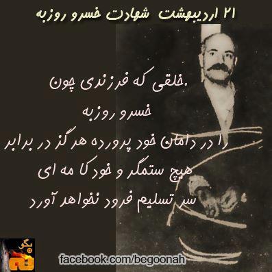 روز٢۱ اردیبهشت ماه ۱۳۳۷ خسرو روزبه، افسرمبارز و ميهن پرست، توسط دژخيمان رژيم شاه به جوخه تيرباران سپرده شد.
