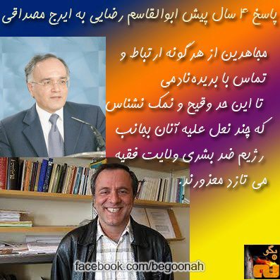 بدون شرح! پاسخ ۴ سال پيشِ آقای ابوالقاسم رضايي به ايرج مصداقي
