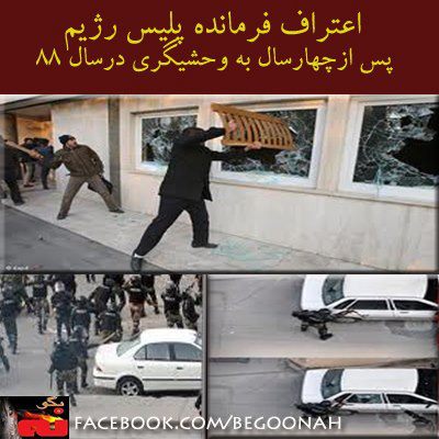 با گذشت حدود چهار سال از آن حوادث و در آستانه یازدهمین دوره انتخابات قلابی ریاست جمهوری٬ پاسدار احمدی مقدم اعتراف کرده که این تخریبها از سوی ماموران پلیس صورت گرفته بود.