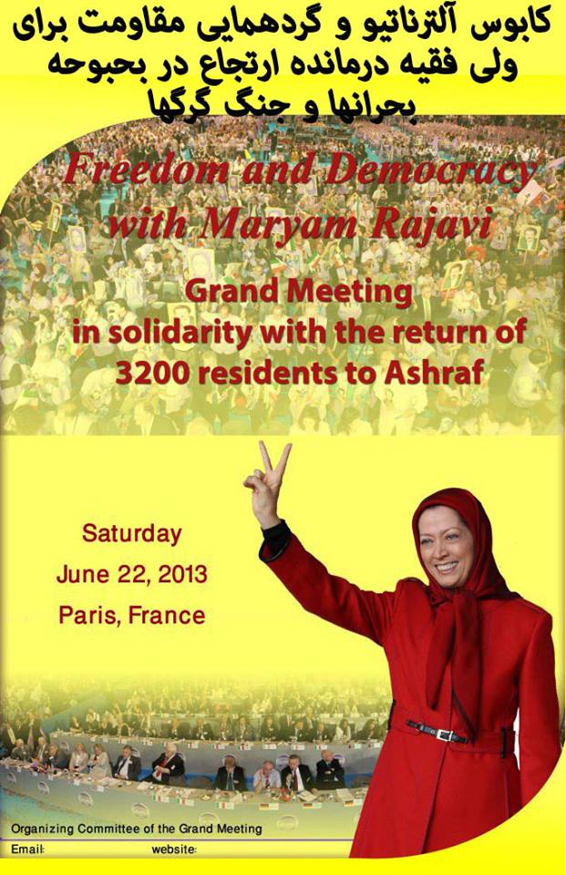 همچنين ادعا می کند که مجاهدين جمعيت را با اين عنوان که گويا رئيس جمهور ايران، احمدی نژاد در آن سخنرانی خواهد کرد، به گردهمايی فرا می خوانند.