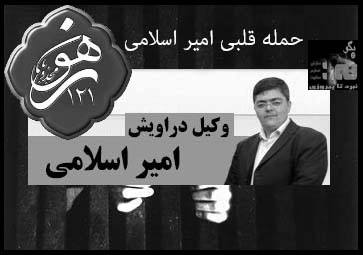 امیر اسلامی از وکلای زندانی دراویش در بند ۳۵۰ اوین دچار حمله قلبی شده و به بیمارستان منتقل گردید. به گزارش مجذوبان نور؛ امیر اسلامی از وکلای زندانی دراویش گنابادی روز گذشته در بند ۳۵۰ زندان اوین دچار حملهی قلبی شد که شدت این حمله باعث بیهوشی آقای اسلامی گردید. مسئولین زندان بدلیل وخامت حال ایشان، این درویش زندانی را بصورت اورژانسی به بیمارستان مدرس تهران منتقل کردند ولی متاسفانه هیچ رسیدگی خاصی به وضعیت ایشان در بیمارستان نیز نشده و پس از معاینهی سرپایی، این درویش زندانی را با همان وضعیت به زندان بازگردادند.