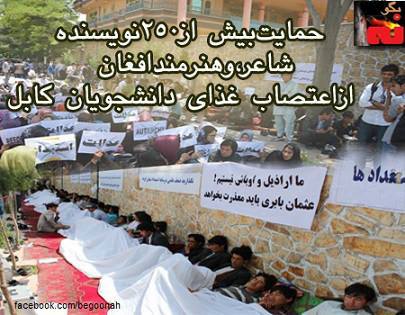 ما به عنوان جمعي از هنرمندان و اهالي قلم افغانستان ضمن محکوم کردن سکوت و معامله گري دولت، پارلمان و اربابان قدرت در مقابل اعتراض مسالمت آميز و مدني اين دانشجويان و برخورد پرخاشجويانه ي پليس و رفتار غير مسئولانه ي مراکز درماني در قبال ايشان، حمايت خويش را از اين حرکت بزرگ و ارزشمند اعلام مي کنيم و باور داريم که اگر ظرفيت هاي اين حرکت باشکوه مدني به خوبي و با هوشياري کافي شناسايي و مديريت شود مي توان به ايجاد جريان عدالت خواهي عظيم تري اميد داشت که تک تک شهروندان اين خاک را با خود همراه بسازد. ما همچنين نگراني خود را نسبت به وضعيت صحي دانشجويان اعتصاب کننده اعلام مي کنيم و از تمام مردم افغانستان، ديگر دانشجويان، نهادهاي مدني و حقوق بشر تقاضا مي کنيم تا به ياري ايشان بشتابند. ما همچنين از دولت مردان تقاضا داريم پاسخ اعتراض صلح جويانه ي اين دانشجويان را با رسيدگي معقول و مطلوب به مطالباتشان بدهند و نگذارند بيش از اين جان فرزندان غيور اين خاک در تهديد مرگ قراربگيرد و خشمي بزرگتر و فراگير تر را سبب شود.