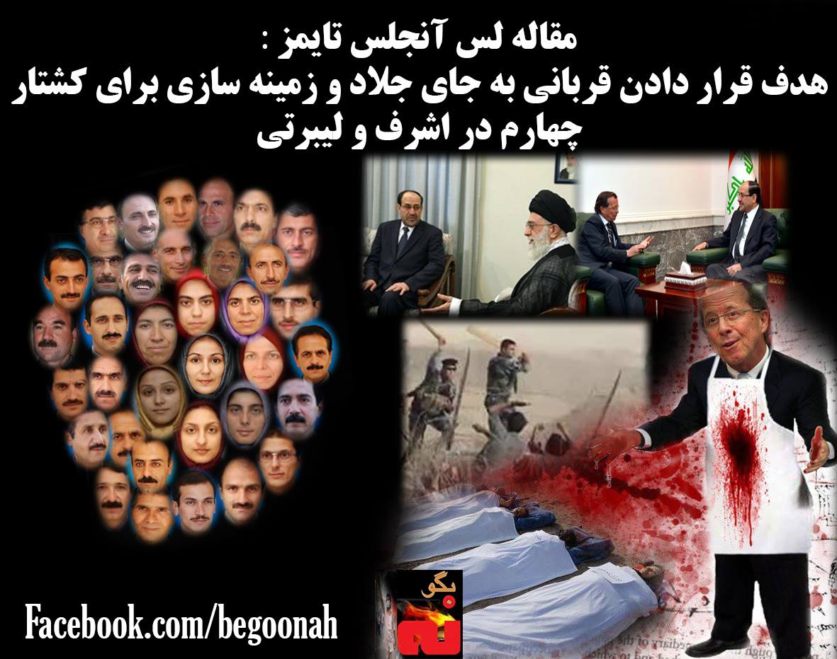 مقاله «طرحهاي ايالات متحده براي انتقال گروه تبعيدي ايراني از عراق با مانع مواجه مي شود- لس آنجلس تايمز، 25مه 2013» نه تنها يك نمونه كلاسيك ژورناليسم مغرضانه، غيرحرفه يي و سطحي است، بلكه نمونه شگفت آوري از سرهم بندي كردن دروغهاي شاخدار است كه خواسته يا ناخواسته راه را براي چهارمين قتل عام «همان گروه تبعيدي» فراهم ميكند. برخلاف ادعاي نويسنده، دفتر شوراي ملي مقاومت ايران، در واشينگتن در اين رابطه هرگز مورد تماس واقع نشده و بعكس تلاشهاي اين دفتر براي تماس با اين نويسنده بيجواب مانده است.